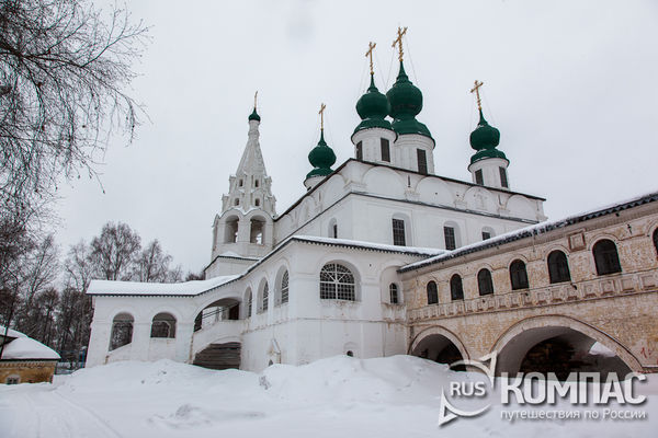 От Спасо-Преображенской церкви рукой подать до бывшей Архангельской улицы (ныне ул. П. Покровского), где стоит Михайло-Архангельский монастырь. Монастырь основан в 1212 году преподобным Киприаном. Раньше на этом месте стояла деревянная церковь, и только в XVII веке главный собор был отстроен в камне. До революции в соборе хранилась икона XIII века "Собор Архангела Михаила", которую в 1920-х годах передали в Русский музей. Сейчас Михайло-Архангельский монастырь входит в состав Великоустюгского музея-заповедника. Зайти в храм можно только летом. Зимой территория монастыря завалена снегом по пояс, только кое-где расчищены дорожки.