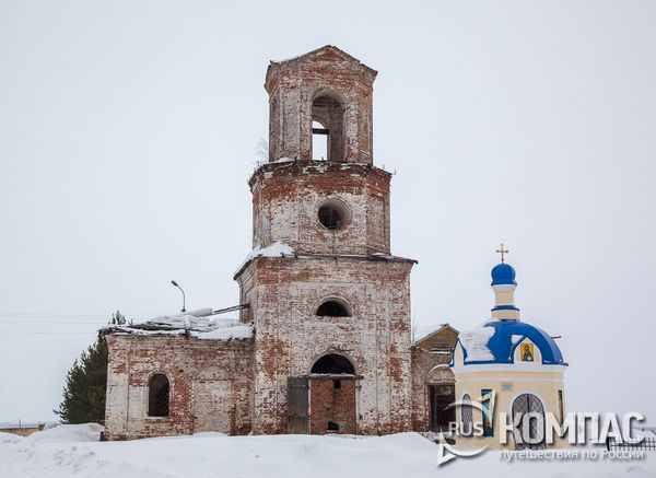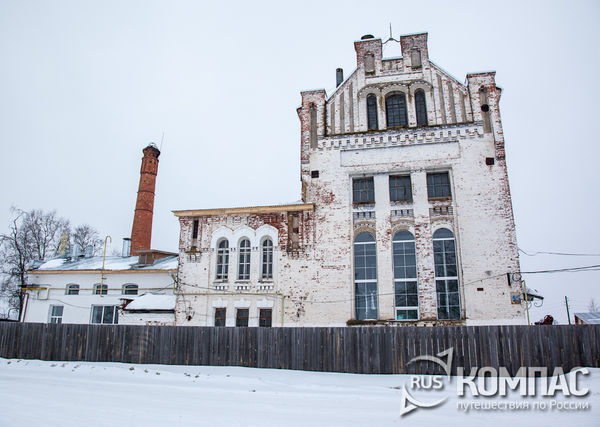 Видите маленькую часовню перед останками храма? Это пример продолжения устюжских традиций «строительства на деньги благотворителей». Часовня построена в 2011 на средства предпринимателя В. М. Перевалова рядом с местом, на котором стояли церкви Покровского Красногорского прихода города. И это радует. Здесь же, на Красной горке, можно увидеть сохранившееся здание пивоваренного завода Людвига Георга Зебальда. Так здание выглядело на старых фотографиях: