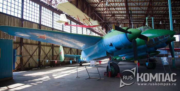 Первый многомоторный самолет был создан в 1913 году великим русским авиаконструктором Игорем Ивановичем Сикорским. На тот момент "Муромец" был чуть ли не самым большим самолетом в мире с размахом крыла 30 м. Серийно производился на Русско-Балтийском вагонном заводе вплоть до 1919 года. Всего было выпущено по разным данным от 79 до 83 экземпляров. "Илья Муромец" стал первым в мире пассажирским самолётом, оснащенным отдельным от кабины комфортабельным салоном, спальными комнатами и даже ванной с туалетом. На "Муромце" имелось отопление (выхлопными газами двигателей) и электрическое освещение. Однако начало Первой мировой и гражданской войны в России помешали дальнейшему развитию отечественной гражданской авиации. Самолеты "Илья Муромец" применялись в качестве дальних разведчиков, реже - бомбардировщиков. "Муромцы" оснащались мощным оборонительным вооружением, практически с круговым сектором обстрела, и могли летать без сопровождения истребителей. Размещение экипажа в боевом варианте самолета стало классическим для большинства тяжелых бомбардировщиков и по сей день: в носовой части находился стрелок-бомбардир, за ним пилот (или пилоты), а за ним - штурман (бортинженер) и стрелки бортового вооружения. Стандартное бомбардировочное вооружение состояло из 150 - 250 кг бомб, причем максимальная бомбовая нагрузка оценивалась в 480 кг. В музее экспонируется макет "Ильи Муромца", изготовленный в натуральную величину по заказу Мосфильма в 1979 году для съемок фильма режиссёра Даниила Храбровицкого "Поэма о крыльях" о жизни и творчестве авиаконструкторов А. Н. Туполева и И. И. Сикорского. Самолеты АНТ-2 и АНТ-25 (РД)