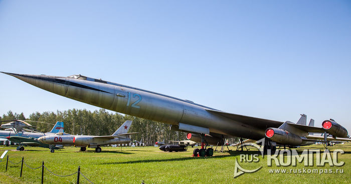 Т-4 ("сотка") - ударно-разведывательный бомбардировщик-ракетоносец ОКБ Сухого. Предназначался для уничтожения авианосных ударных групп противника и ведения стратегической разведки. Название "сотка" самолёт получил за расчетный вес - 102 тонны. Длина самолета 44,5 м, высота 11,2 м. После взлета и подъёма носового обтекателя в рабочее положение экипаж Т-4 не имел возможности видеть окружающее пространство, и полет производился только по приборам. Процесс производства и проектирования занял почти 9 лет, что значительно больше среднего. При создании самолёта возникли проблемы с титановой обшивкой: в ходе летных испытаний после цикла "нагрев-охлаждение" обшивка коробилась и растрескивалась. Поэтому на втором опытном самолете "102", построенном в 1973 году, были применены новые, более вязкие и пластичные сплавы, что устранило проблему трещин. Впоследствии применение титаново-стальных конструкций получило дальнейшее развитие в отечественной сверхзвуковой авиации и космонавтики ("Буран"). Пассажирский сверхзвуковой Ту-144