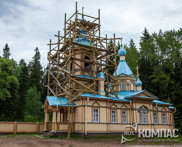 В 1930-е годы здесь была школа-приют для мальчиков сирот и мальчиков из неполных семей. Детей обучали на финском языке церковному чтению, пению и иконописи по курсу народной школы, а затем 2 года дети осваивали какое-либо мастерство. Всего за время существования приюта обучение в школе прошли 83 ученика. Как и верхний, нижний храм был разорен. Восстановительные работы начались в 2004 году, и уже в 2005 году храм был освящен. На сегодня все. Дождь начинается, а до усадьбы 7 км. Продолжение следует.