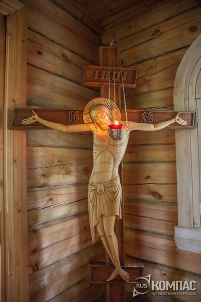 В середине 1950-х годов храм был перевезен на Центральную усадьбу монастыря и приспособлен под кормокухню для свинарника. У меня фантазии не хватает, чтобы представить, мотивы действий тех, кто это сделал. Ну, атеист и все такое, но разбирать постройку на доски, потом перетаскивать несколько километров по лесу до усадьбы, чтобы сделать кормокухню свинарника? Позже останки храма в усадьбе полностью сгорели. В 2003 году началось восстановление Коневского скита. В 2004 году был освящен воссозданный деревянный храм в честь Коневской иконы Божией Матери. Резной липовый иконостас выполнен мастерами из Суздаля. Обязательно дойдите до этого храма. Пусть он и самый маленький, но, по-моему, самый уютный. Хотя, для описания храма это и не самое подходящее слово. Но вот так.