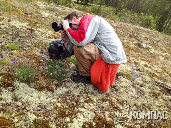 Места здесь красивые, и спешить совсем не хотелось. Останавливались часто, разглядывали окрестности, фотографировали все, что просилось в объектив. А просилось многое: подушки моховые, цветушие фиалка и купена, гвоздика и жимолость.