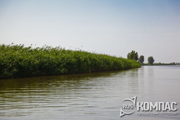 В Астрахани все уличные столбы оклеены объявлениями турагентств, предлагающих организовать поездки "на лотосы". Договорились с одним из них, и уже на следующее утро ехали в сторону города Камызяк. Город славится арбузами, поэтому на обратном пути остановили машину и купили на пробу местный арбуз. Было бы время, заехали и в Камызякский арбузный музей. Через час с небольшим мы уже были в поселке Станья на турбазе "Рыбное Место". Здесь пересели на катер и отправились туда, где Волга впадает в Каспийское море. К слову, турбаз здесь множество. В основном, заселяют их иногородние любители порыбачить.