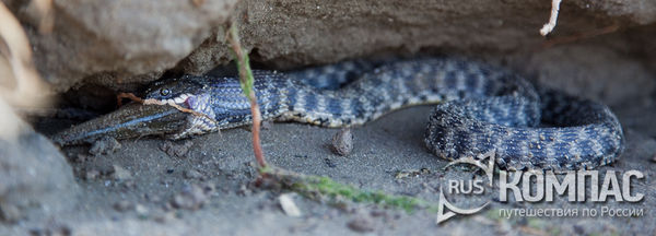 Возвращаясь на базу, замечаем в реке водяных ужей. Из воды видна только голова, покачивающаяся из стороны в сторону.