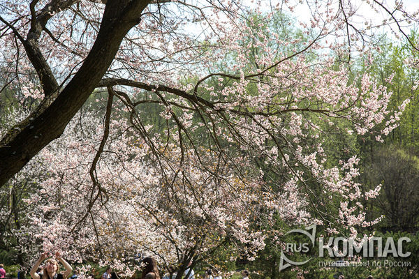 В разные годы период цветения приходится на разные дни: самое ранее начало цветения отмечено 25 апреля, самое позднее - 15 мая. По саду гуляют не спеша, наблюдая, как ветер срывает белые и розовые лепестки. Вокруг деревьев выстраивается вереница желающих сфотографироваться на фоне цветущих деревьев.