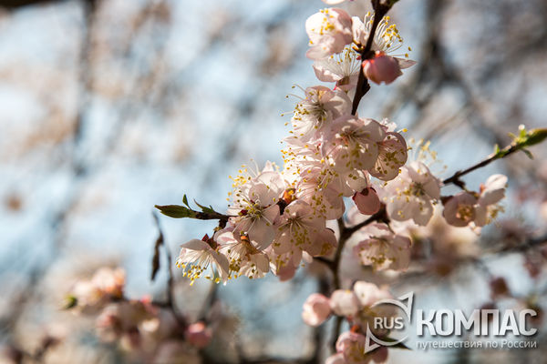 И вот, мы проходим через ворота и попадаем в цветущий сад. Деревья усыпаны белыми и розовыми цветами.